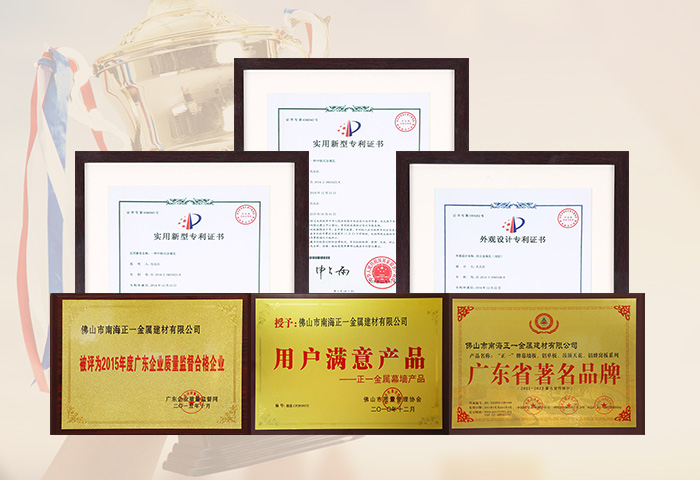 通過ISO9001認(rèn)證,國(guó)家建筑材料測(cè)試中心和中國(guó)有色金屬華南產(chǎn)品質(zhì)量監(jiān)督檢驗(yàn)中心合格檢測(cè),符合美國(guó)建筑制造商協(xié)會(huì)AAMA2605-98涂層標(biāo)準(zhǔn),被國(guó)家建設(shè)部認(rèn)定為建筑鋁合金外墻板、鋁合金天花板定點(diǎn)生產(chǎn)企業(yè)。